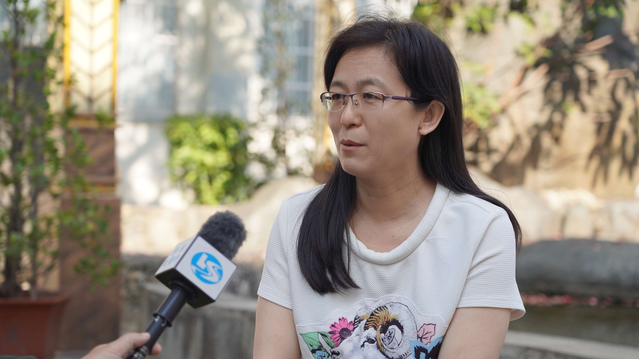 王芳老師接受采訪。