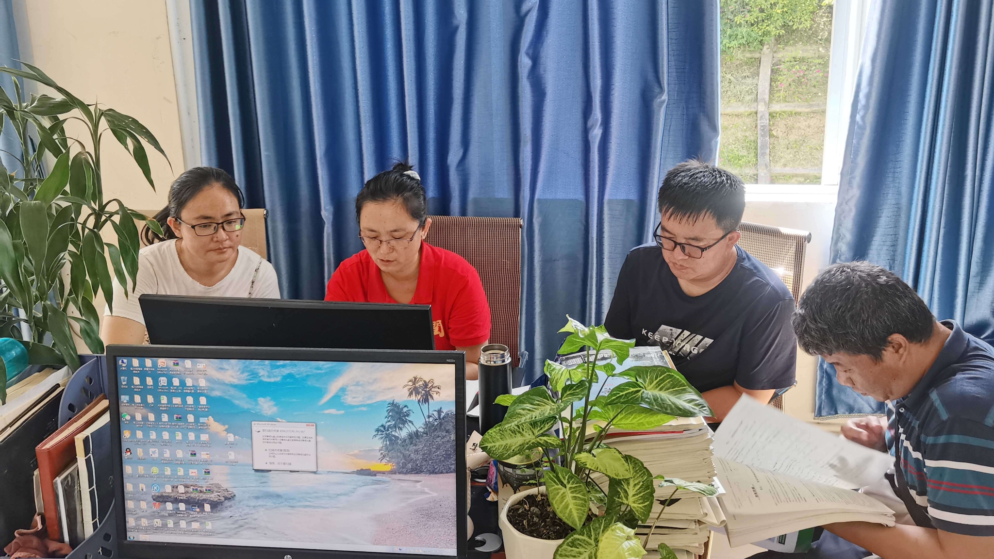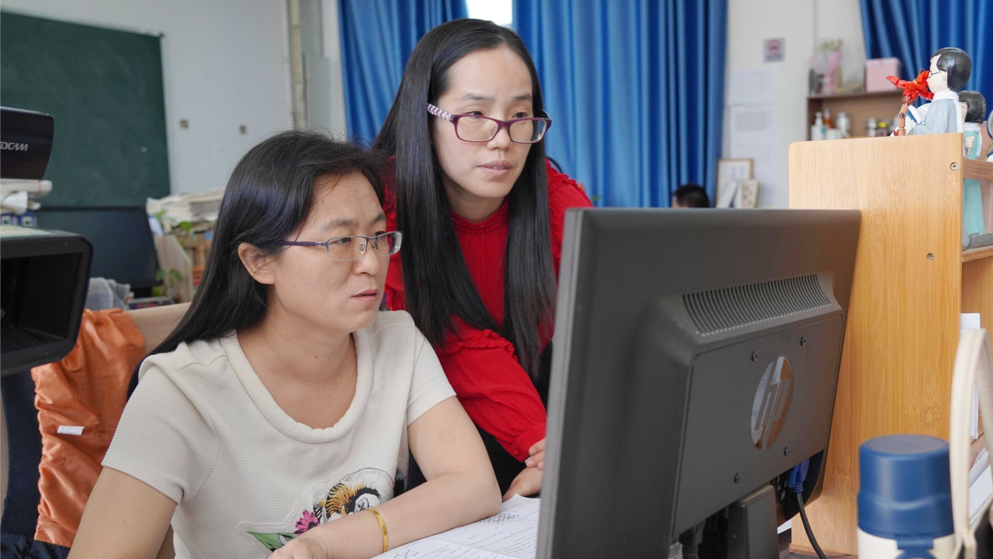 王芳老師與同事積極探討教學方法。
