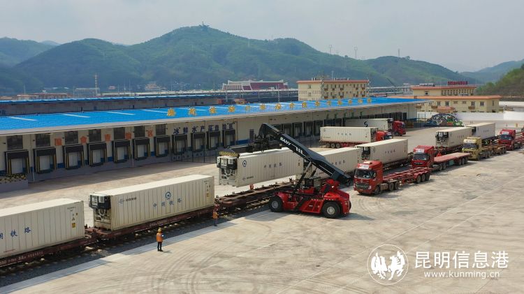 王家營西中鐵聯(lián)集昆明中心站,中老鐵路國際貨物列車從這里出發(fā),駛向老撾。楊紫軒 攝