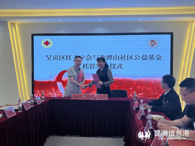 昆明信息港訊 記者段佳琪 通訊員趙娟 為充分發(fā)揮黨建引領(lǐng)“五社聯(lián)動”在基層治理中的重要作用,5月16日,昆明市呈貢區(qū)龍?zhí)渡缴鐓^(qū)基金與呈貢區(qū)紅十字會基金正式簽約,成立龍?zhí)渡缴鐓^(qū)公益基金。