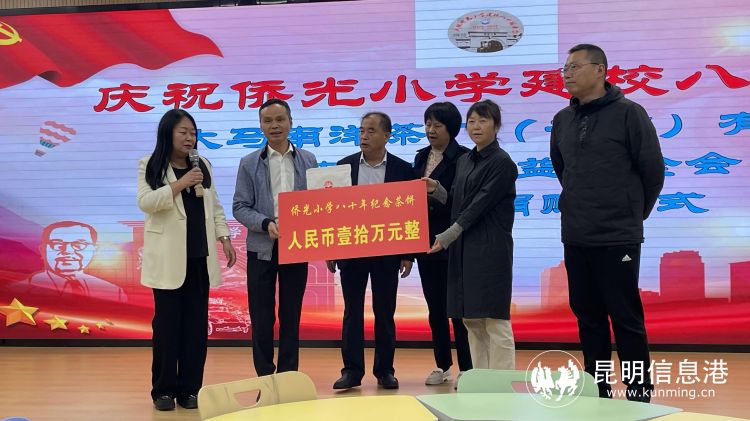 昆明信息港訊 記者孫紅亮 5月15日,大馬南洋茶廠(chǎng)云南公司通過(guò)云南華商公益基金會(huì)向昆明僑光小學(xué)捐贈(zèng)了價(jià)值10萬(wàn)元的“慶祝僑光小學(xué)建校80周年”紀(jì)念茶餅。