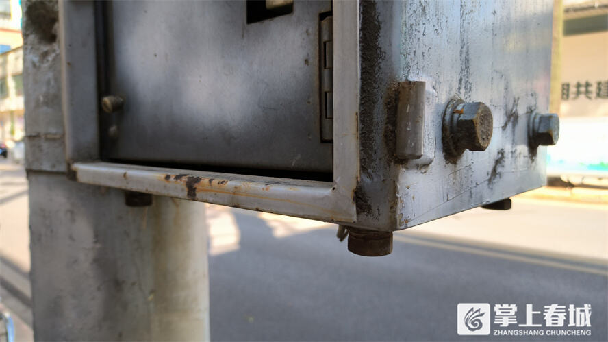 上午10時,昆明12345熱線辦公室副主任王智明來到現(xiàn)場,對金屬箱進行了查看。小掌記者看到,金屬箱位于學校門口約30米的一根棄電線桿上,離地約140厘米,邊角尖銳。箱子早已銹跡斑斑,內(nèi)部寫有“車輛檢測器”字樣,電源線被剪斷,未使用。