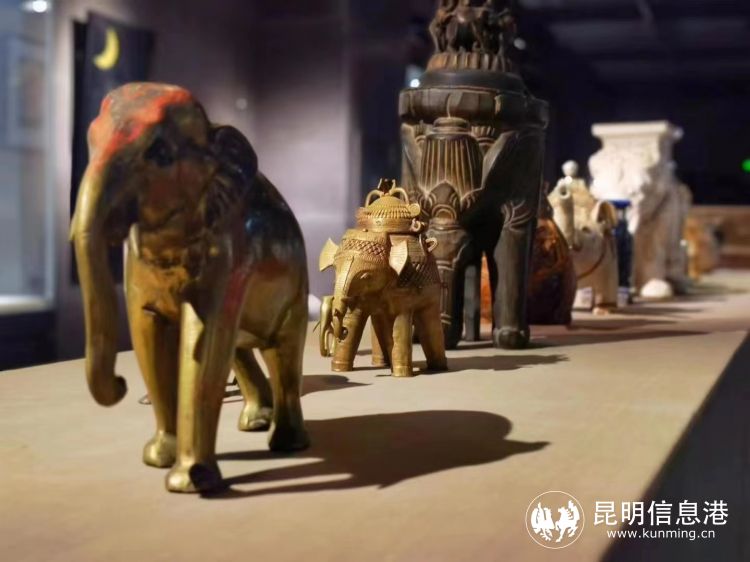 展廳中間的5米的長(zhǎng)桌上,一群由各國(guó)大象藝術(shù)品組成的隊(duì)伍在這里重新集結(jié),一路向北。這些大象雖然分別來(lái)自越南、泰國(guó)、印度、緬甸、中國(guó)云南等不同國(guó)家和地區(qū),時(shí)間跨度從15世紀(jì)到當(dāng)代,有木雕、瓷器、銅等不同材料,都寄托了人們對(duì)于美好事物的向往,它們從歷史的深處走來(lái),從中南半島各國(guó)文化中走來(lái),歲月悠悠,道路坦蕩。