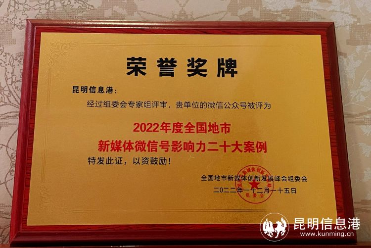 昆明信息港獲評(píng)“2022年度全國(guó)地市新聞媒體網(wǎng)站影響力二十大案例”,昆明信息港微信公眾號(hào)入選“2022年度地市新媒體微信公眾號(hào)影響力二十大案例”。