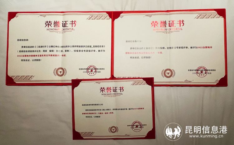 此外,在昆明信息港報(bào)送的作品中,《“世界的香格里拉”主題大型融媒體宣傳》和《尋找洱源美好推薦官》分別榮獲“2022年度全國(guó)地市新媒體新聞策劃大師二十大案例”及“2022年度全國(guó)地市新聞媒體經(jīng)營(yíng)策劃大師二十大案例”;《【昆港時(shí)評(píng)】讓爆紅神曲映射出的鄉(xiāng)土情懷釋放更多正能量》被評(píng)為“2022全國(guó)地市新媒體百篇優(yōu)秀文字新聞案例一等獎(jiǎng)”;《滇游記》系列視頻被評(píng)為“2022全國(guó)地市新媒體百篇優(yōu)秀視頻新聞案例一等獎(jiǎng)”;時(shí)評(píng)欄目《明人明言》被評(píng)為“2022全國(guó)地市新媒體優(yōu)秀新聞欄目三等獎(jiǎng)”。
