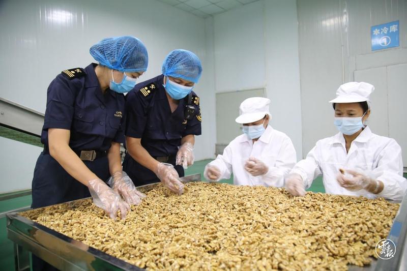 圖為海關(guān)關(guān)員在企業(yè)對出口核桃進行監(jiān)管 通訊員 李易霖 攝