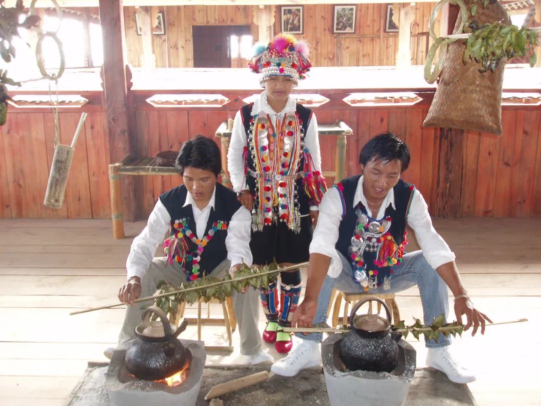 哈尼族的“土鍋茶”是一種古老的飲茶方法,其制作時(shí),先用大土鍋將山泉水燒開(kāi)后,放進(jìn)燒香的茶葉,煮5—6分鐘后,將茶水裝入用竹子制作的茶盅內(nèi)。這種茶水清香可口,回味無(wú)窮。