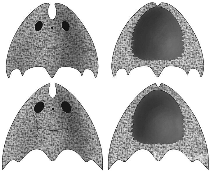 近日,中科院古脊椎動(dòng)物與古人類研究所研究人員報(bào)道了在江西九江武寧地區(qū)發(fā)現(xiàn)的4.38億年前的盔甲魚類新種——九江江夏魚。九江江夏魚在系統(tǒng)分類上屬于盔甲魚亞綱真盔甲魚目曙魚科江夏魚屬,典型特征是中背孔前端向前延伸至頭甲吻緣并使吻緣裂開,即“裂吻”,使得它看起來(lái)像一條豁嘴的魚。江夏魚與曙魚、煤山魚、清水魚共同構(gòu)成一個(gè)獨(dú)立的演化支系——曙魚科。江夏魚屬以“裂吻”這一特征明顯區(qū)別于曙魚科的其他三個(gè)成員,以發(fā)育中背脊進(jìn)一步區(qū)別于曙魚和煤山魚。曙魚是曙魚科最原始的成員,是這個(gè)大家庭中的長(zhǎng)輩,其中背孔前端雖延伸至吻緣但未使吻緣裂開,這表明“裂吻”在曙魚科中屬于衍生特征。值得注意的是,“裂吻”這一特征在中華盔甲魚科的裂吻魚屬中最先被發(fā)現(xiàn),中華盔甲魚科是比曙魚科更為進(jìn)步的一個(gè)單系類群,這表明“裂吻”在真盔甲魚目中至少獨(dú)立起源了兩次。除了“裂吻”之外,江夏魚還平行演化出此前認(rèn)為僅存在于多鰓魚目和華南魚目的特征,如頭甲后部發(fā)育中背棘和中背脊,表明真盔甲魚目在演化初期就已經(jīng)做出了多種演化嘗試,呈現(xiàn)出較高的形態(tài)多樣性。