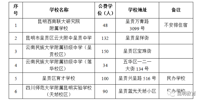 昆明市呈貢區(qū)2023年合作辦學(xué)學(xué)校初中一年級公費(fèi)學(xué)位招生方案