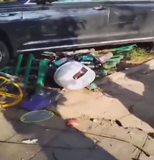 多輛停放在周邊的電動(dòng)車瞬間遭殃