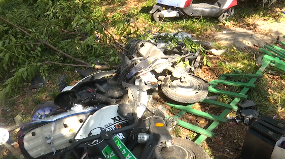 據(jù)了解,受損的電動(dòng)車共有6輛,其中4輛損傷較輕的電動(dòng)車已被車主騎走。另外兩輛電動(dòng)車受損比較嚴(yán)重,保險(xiǎn)公司工作人員正在現(xiàn)場(chǎng)評(píng)估損失。