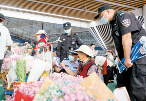 龍街派出所民警在花市執(zhí)勤。昆明警方供圖
