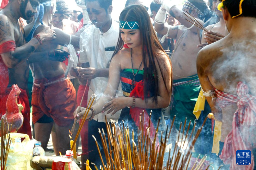 柬埔寨5月24日舉辦了一年一度的雨神節(jié)。雨神節(jié)是柬埔寨有幾百年歷史的傳統(tǒng)慶?;顒?dòng),在每年雨季初期舉行,這一天人們?cè)谀樕虾蜕眢w上作畫(huà),并穿上草裙,祈求風(fēng)調(diào)雨順,人畜興旺。