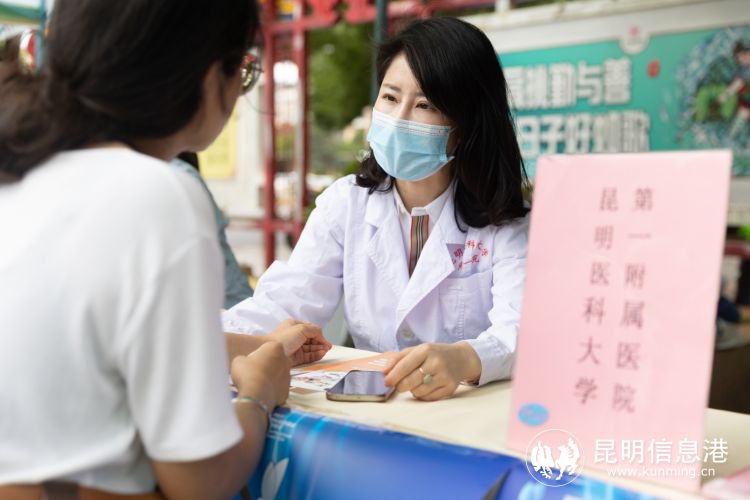 昆明醫(yī)科大學(xué)附屬口腔醫(yī)院口腔預(yù)防科主任、博士生導(dǎo)師李艷紅,結(jié)合著生動(dòng)活潑的科普宣傳視頻,圍繞著口腔疾病分類、自我口腔保健方法及牙膏的選擇和使用等內(nèi)容開(kāi)展了詳細(xì)實(shí)用的科普講座。昆明醫(yī)科大學(xué)第一附屬醫(yī)院皮膚科專家顧華到現(xiàn)場(chǎng)開(kāi)展義診,向到場(chǎng)咨詢紫外線過(guò)敏、蕁麻疹的居民提供了耐心、專業(yè)的問(wèn)診建議和治療方案。