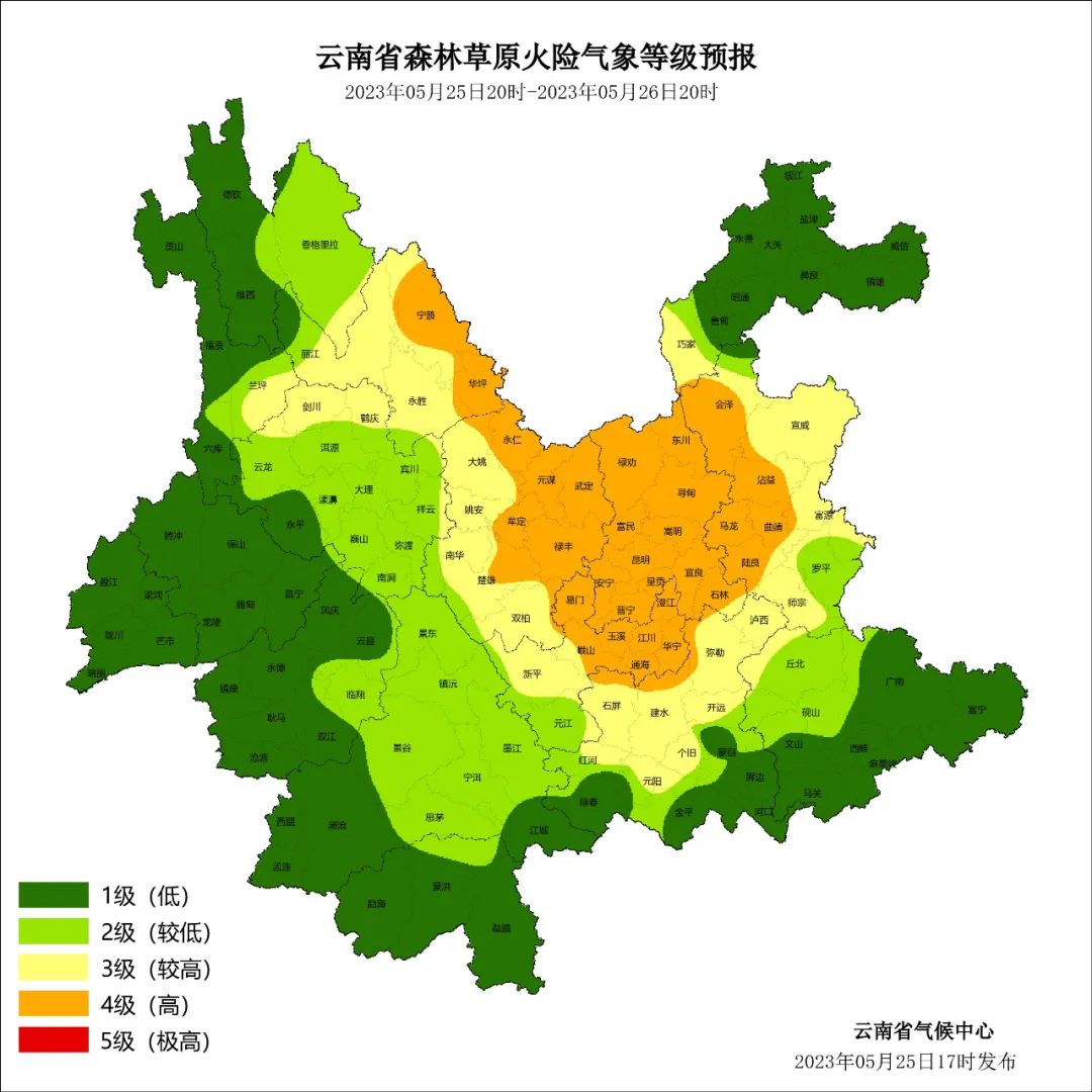 預(yù)計,麗江東部、楚雄東部和北部、昆明、玉溪北部、曲靖西部4級,怒江東部、大理北部、楚雄西部和南部、玉溪中部、昭通西南部、曲靖東部、紅河北部和中部3級,其他地區(qū)1~2級。