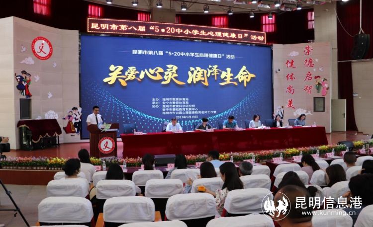 昆明信息港訊 記者上官艷君 近日,昆明市第八屆“5·20中小學生心理健康日”主場活動在云南省安寧市石江學校舉行。昆明市各縣(市)區(qū)教育體育局相關負責人、各中小學校長、心理健康教師等近300人齊聚一堂,聆聽專家講座、分享心理健康教育工作經驗,昆明市未參加現(xiàn)場活動的中小學線上同步收看直播分享。