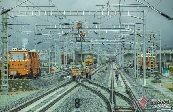 “變形金剛”通過搗固、穩(wěn)定、配砟整形等在中老鐵路國(guó)內(nèi)磨憨段作業(yè)