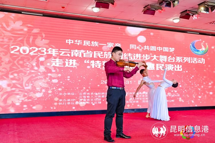 昆明信息港訊 記者姚仲恒 2023年5月31日,以“中華民族一家親·同心共圓中國(guó)夢(mèng)”為主題的2023年云南省民族團(tuán)結(jié)進(jìn)步大舞臺(tái)系列活動(dòng)走進(jìn)“特殊群體”惠民演出在昆明市盲啞學(xué)校舉行。此次活動(dòng)旨在進(jìn)一步豐富群眾精神文化生活,關(guān)愛特殊群體,共享文化惠民成果,鑄牢中華民族共同體意識(shí),促進(jìn)云南省民族團(tuán)結(jié)進(jìn)步示范區(qū)建設(shè)。