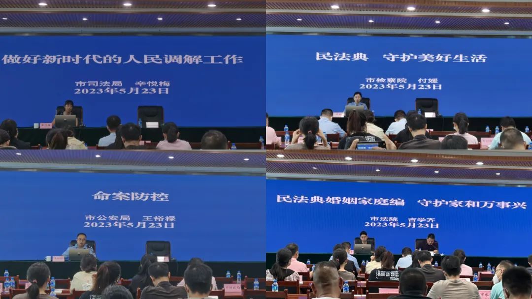 市級(jí)政法單位4名業(yè)務(wù)骨干,還分別以“命案防控、做好新時(shí)代的人民調(diào)解工作、民法典婚姻家庭編:守護(hù)家和萬(wàn)事興、民法典守護(hù)美好生活”為課題,有針對(duì)性地開(kāi)展法治課培訓(xùn)。通過(guò)現(xiàn)場(chǎng)解讀、專題輔導(dǎo)、身邊真實(shí)案例進(jìn)行深入詳細(xì)地講解,內(nèi)容緊貼生活,通俗易懂。