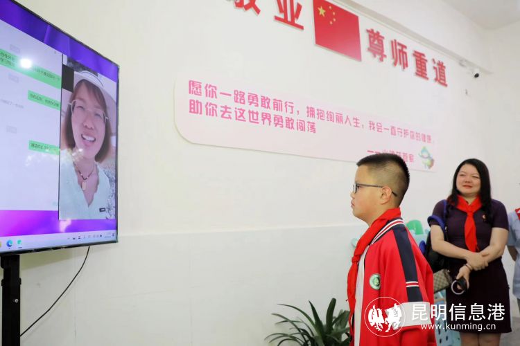 4年級(jí)學(xué)生小魏在兒童之家和媽媽視頻通話(huà)