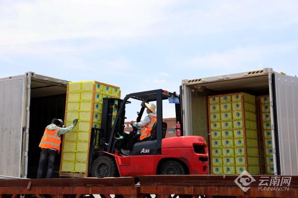當(dāng)前,正值東南亞水果進口旺季,隨著榴蓮、山竹等熱帶水果的大量上市,中老鐵路迎來東南亞水果進口運輸小高峰。為提升進口水果運輸效率,國鐵昆明局?jǐn)y手昆明海關(guān)和中鐵聯(lián)集,優(yōu)化水果進口查驗和裝運組織流程,壓縮磨憨鐵路口岸停留時間,加快到站卸車分撥速度,保障水果搶“鮮”上市。