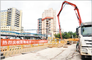 由于一二一大街站位于建設(shè)路與一二一大街交通要道,車流、人流量大,地下管線多,為保障交通道路通行及滿足車站建設(shè)條件,自開(kāi)工建設(shè)以來(lái),施工方進(jìn)行了多次交通疏解圍擋施工。在施工過(guò)程中,參建各方積極配合努力,精心組織協(xié)調(diào),克服了地質(zhì)條件復(fù)雜、安全生產(chǎn)風(fēng)險(xiǎn)高、遷改協(xié)調(diào)工作量大、工期緊張等諸多困難,較預(yù)計(jì)工期提前45天完成封頂任務(wù)。