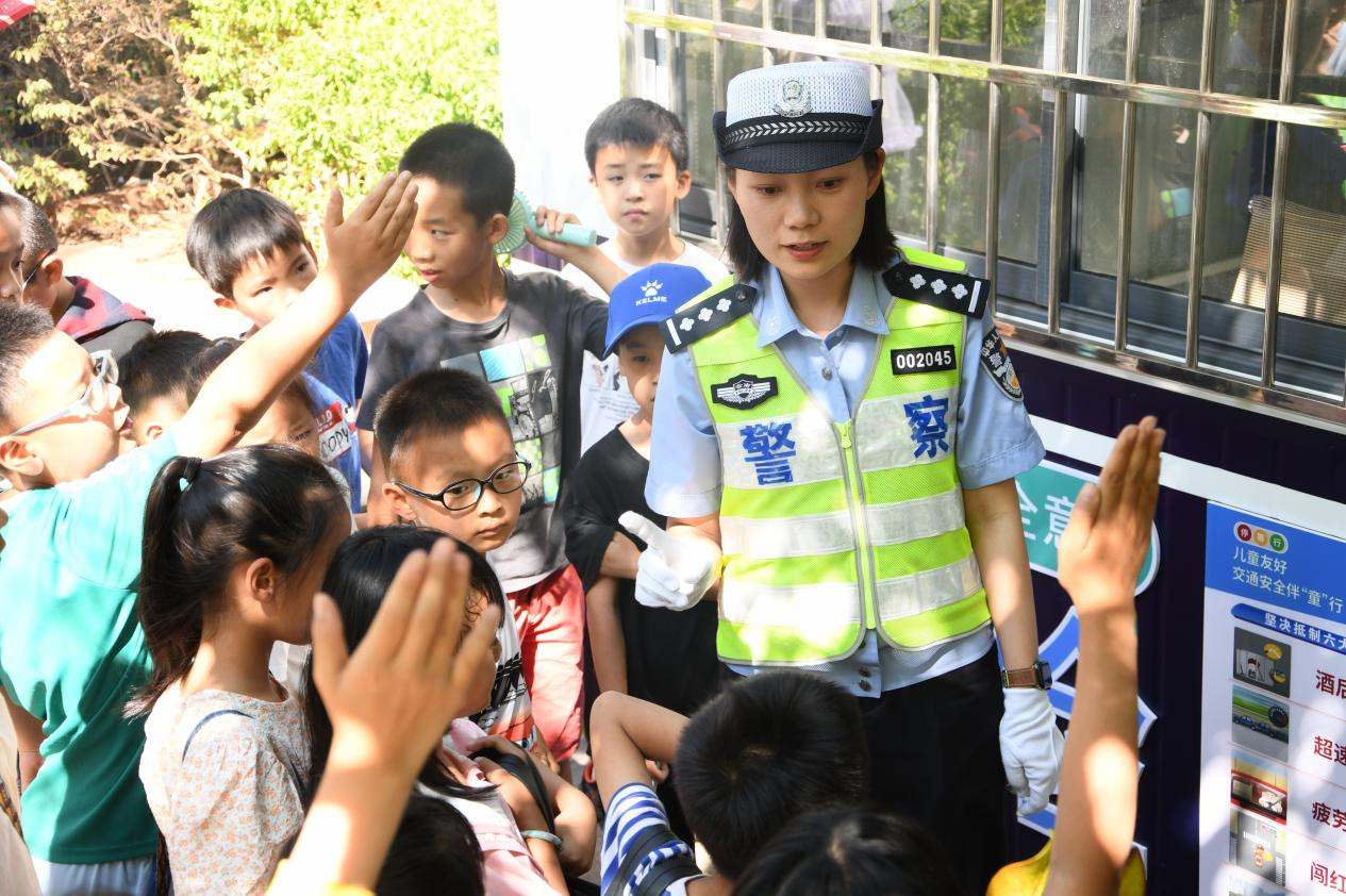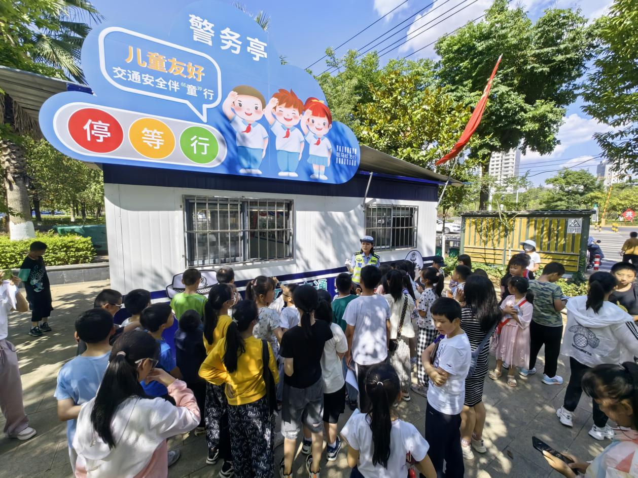 議事會結(jié)束后,首次選舉產(chǎn)生的三名預(yù)備組長分組帶隊參觀了昆明經(jīng)開區(qū)(自貿(mào)試驗區(qū)昆明片區(qū))首個兒童友好交通崗?fù)?。負?zé)該警務(wù)亭的交警向小議員們介紹了交通安全法規(guī)和日常交通安全知識。