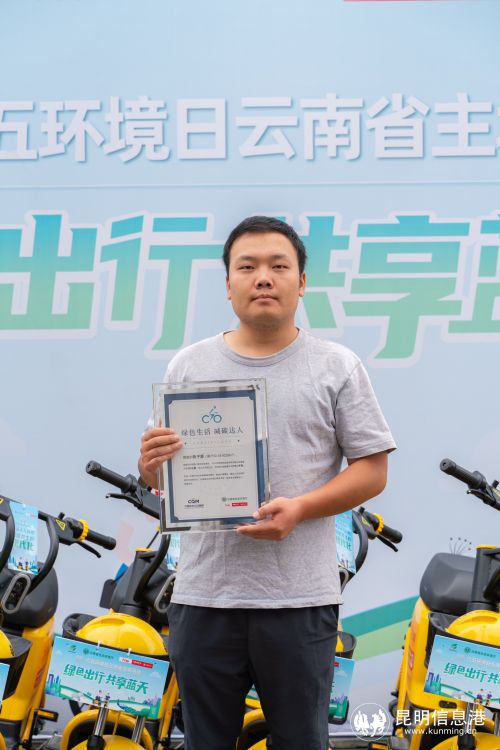“便捷、綠色、實惠?!?996年出生的陳子源在曲靖做跑腿工作,一直使用松果電單車展工作。如今陳子源已成為曲靖的“騎行王”,過去一年,他累計騎行次數超1800次,騎行里程達到7393公里,對應的減碳量高達1970.3公斤。當天陳子源獲得了由云南省生態(tài)環(huán)境廳和“強國電單車”聯(lián)合頒發(fā)的“綠色生活減碳達人”證書。