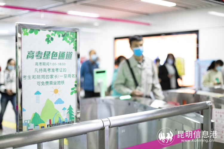 高考期間,昆明地鐵全線網(wǎng)所有車站設(shè)置“高考綠色通道”,推行“三優(yōu)一免”服務(wù):為考生提供免費(fèi)綠色通行服務(wù),考生及2名陪同家屬在考試當(dāng)天可憑2023年高考準(zhǔn)考證到客服中心領(lǐng)取“免費(fèi)進(jìn)站票”免費(fèi)乘坐昆明地鐵。并享受優(yōu)先安檢、優(yōu)先進(jìn)出站、優(yōu)先處理乘客事務(wù)服務(wù)。