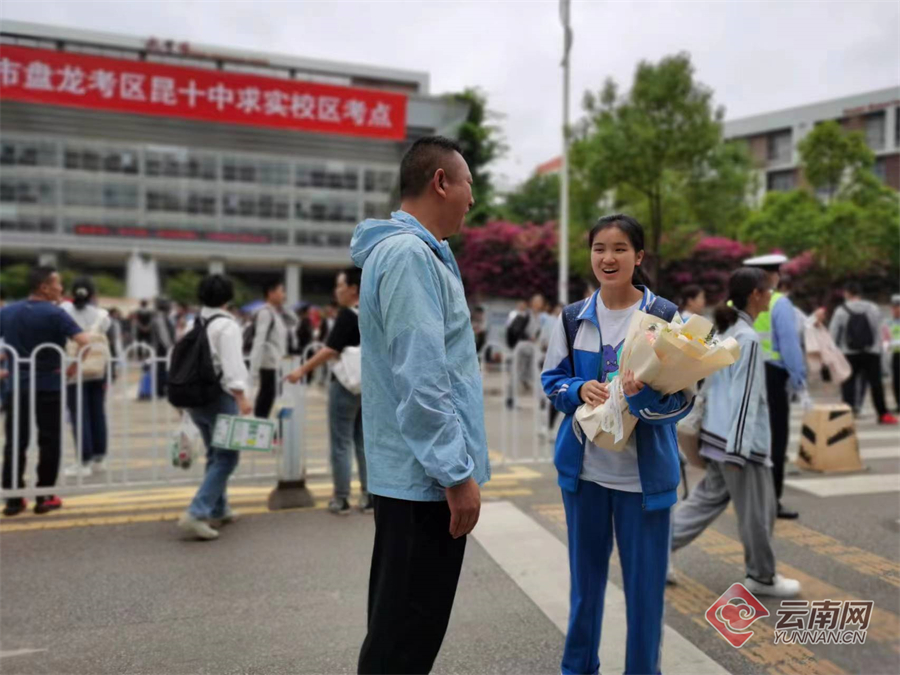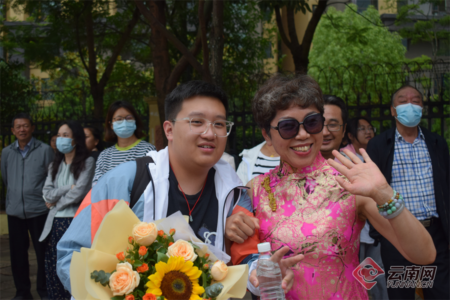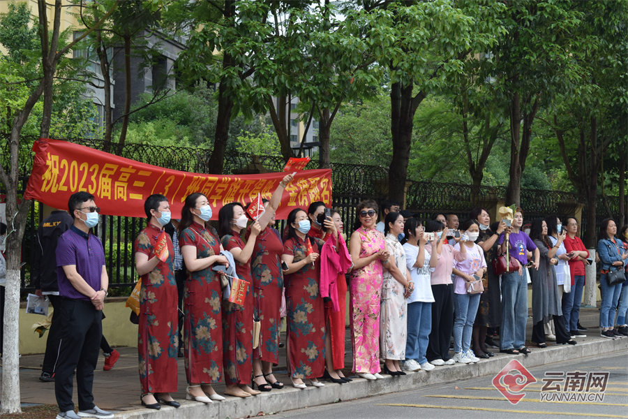 6月7日上午,考生結(jié)束2023高考首科考試,從容走出考場。家長或身穿旗袍或手捧鮮花,在考場外迎接考生。