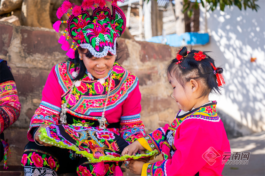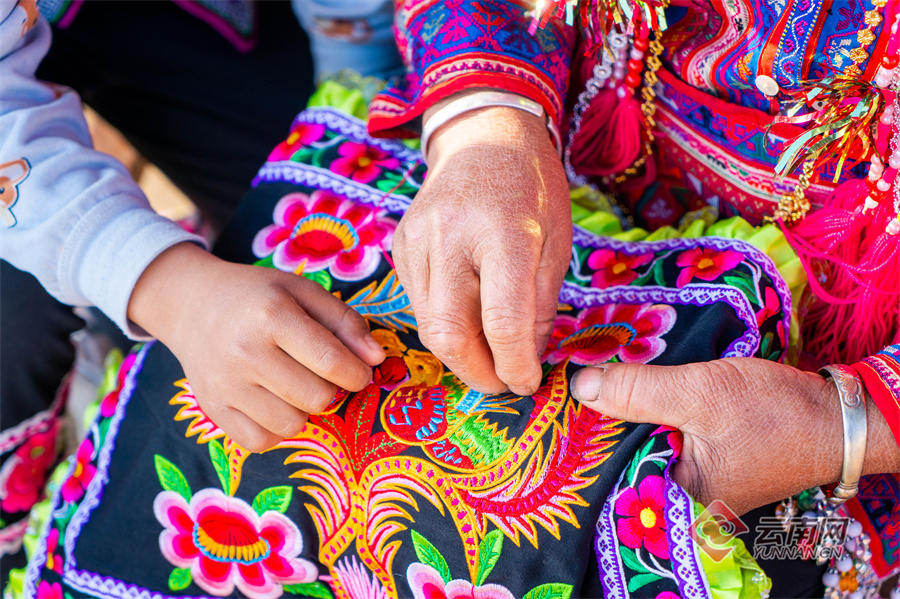 楚雄彝繡手工藝全靠一代代指尖生花的彝族女子薪火相傳。她們很小時(shí)就跟著長(zhǎng)輩學(xué)刺繡,“一學(xué)剪,二學(xué)裁,三學(xué)繡花縫布鞋”,幾乎能拿針就會(huì)繡花。文旅頭條 供圖