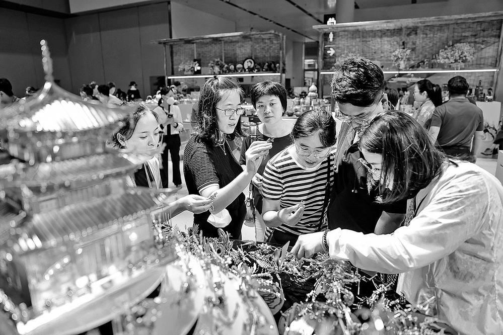 云南展區(qū)內(nèi),精致的商品深受觀展者喜愛。 本報記者 胡妤雅