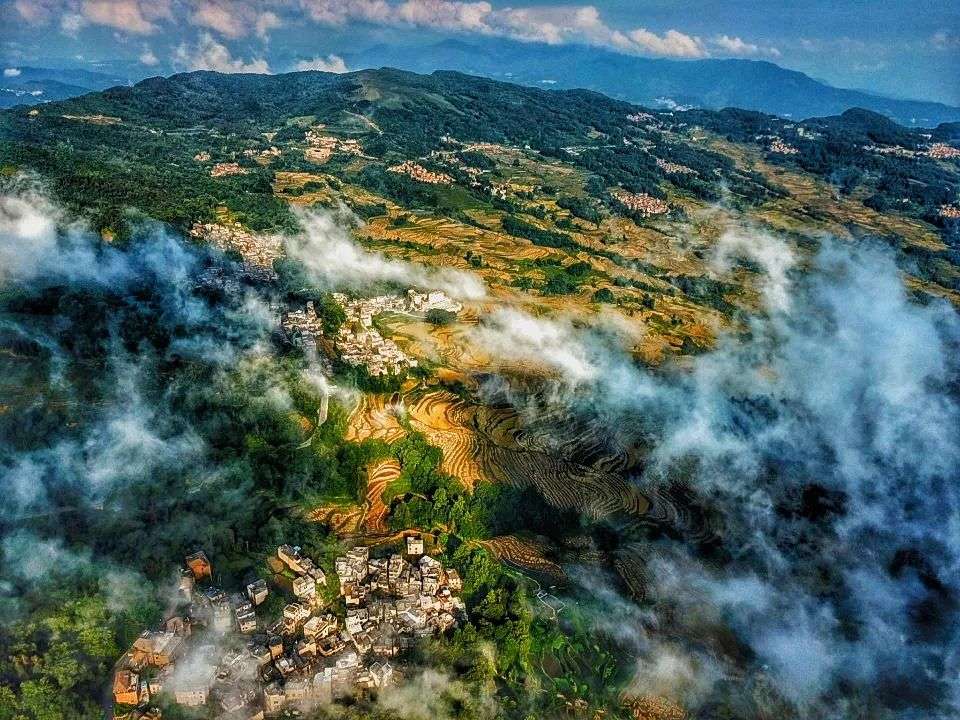 元陽梯田與哈尼山寨(劉建華 攝)