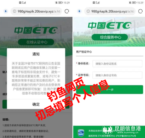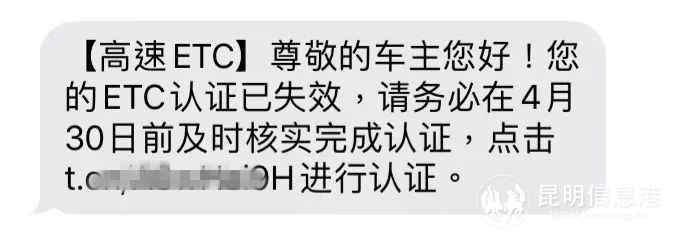 近日,昆明警方接到群眾反映,收到一條“ETC提醒”短信,昆明警方經(jīng)鑒別明確回復(fù):假的!是電信網(wǎng)絡(luò)詐騙!