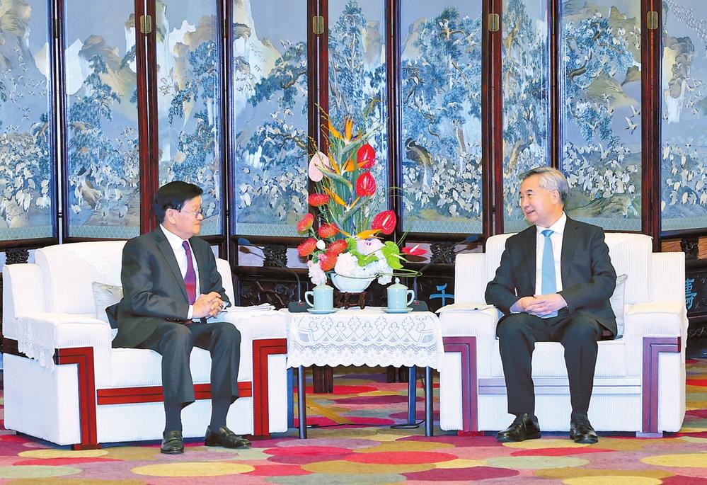6月15日,受中共中央總書記、國家主席習(xí)近平委托,中共中央政治局常委、中央紀(jì)委書記李希代表中共中央在昆明看望并會見老撾人革黨中央總書記、國家主席通倫。新華社記者 姚大偉 攝