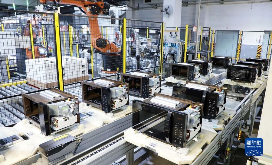 這是格蘭仕微波爐總裝車間。新華社記者劉宏宇 攝