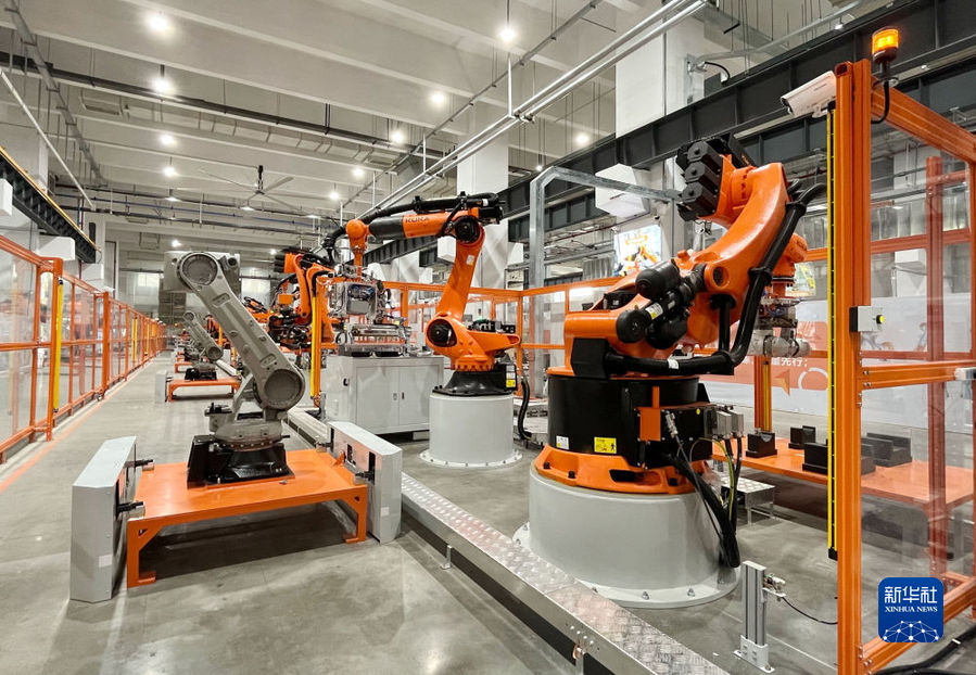 這是美的庫卡智能制造科技園全自動(dòng)化生產(chǎn)線。新華社記者孫飛 攝