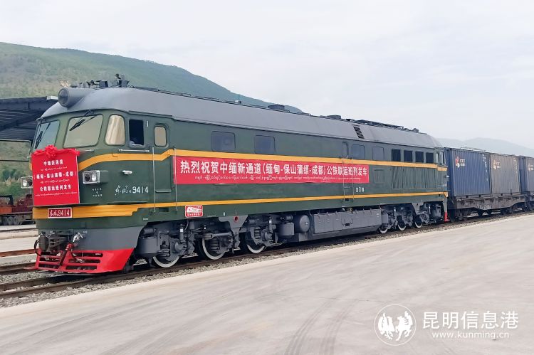 首趟中緬新通道(緬甸-保山蒲縹-成都)公鐵聯(lián)運班列發(fā)車。楊雪峰/攝