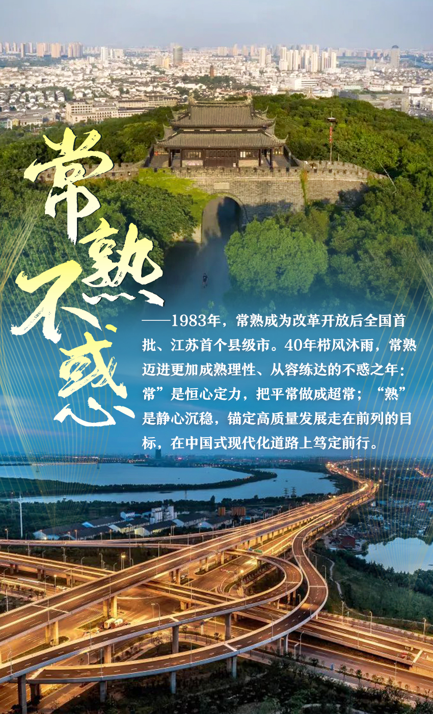 常熟40年櫛風(fēng)沐雨,不僅綜合實(shí)力穩(wěn)居全國百強(qiáng)縣市前五,還入選了首批“國際濕地城市”;家喻戶曉的沙家浜既是紅色尋根地,也成為鄉(xiāng)村振興的排頭兵;改革開放初期蹚出“碧溪之路”的小鎮(zhèn),現(xiàn)已是高端產(chǎn)業(yè)集聚的濱江新城,依然澎湃著與時俱進(jìn)的動能活力。