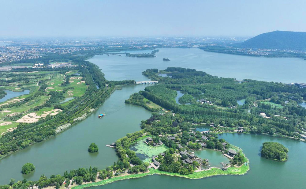 6月9日無人機(jī)拍攝的常熟尚湖風(fēng)景區(qū)景色。