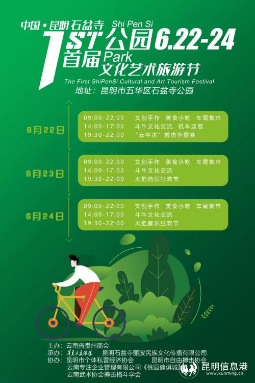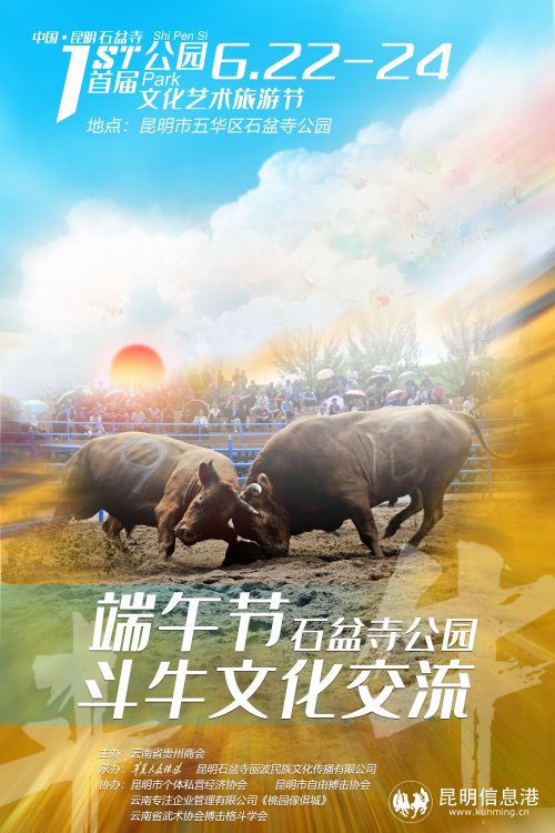 今年夏天怎么過端午節(jié)?6月22日—24日,“中國·昆明石盆寺公園首屆文化藝術(shù)旅游節(jié)”將在昆明市五華區(qū)石盆寺公園隆重開幕。屆時,將有搏擊爭霸賽、斗牛文化交流、火把音樂狂歡節(jié)等精彩活動輪番上演,期待您的參與!