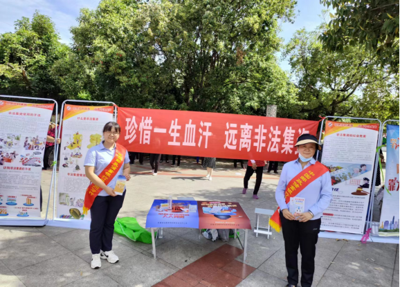 活動現(xiàn)場通過發(fā)放資料,宣傳講解等形式,向社會公眾宣傳了非法自己等各類經(jīng)濟(jì)犯罪活動的概念特征、表現(xiàn)形式、常見手段,揭示了此類違法犯罪活動的欺騙性、風(fēng)險性和危害性;通過答題互動、以案說法等貼近群眾的方式掀起活動高潮,向群眾介紹非法集資的危害,增強了廣大群眾特別是老年人的防非意識和能力;普及正確的投資理財知識,引導(dǎo)群眾樹立理性投足的理念,自覺遠(yuǎn)離和抵制非法集資的危害。