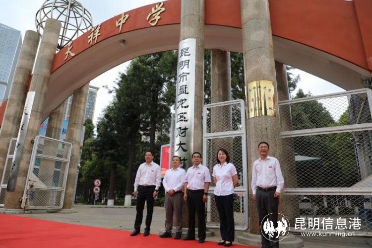 昆明信息港訊 記者李紅鸞 6月21日,昆明市盤龍區(qū)財大附中揭牌儀式在天祥中學舉行,開啟了盤龍區(qū)人民政府和云南財經(jīng)大學全面整合天祥中學教育資源,合作辦學、共贏未來的新篇章。