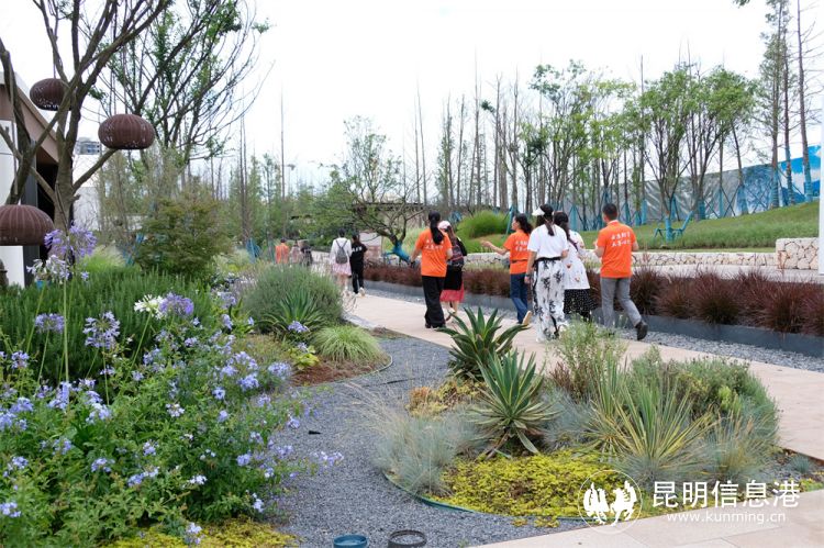 志愿者和盲友在云雁湖邊漫步