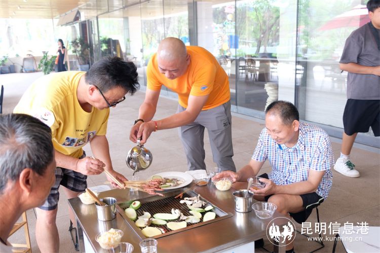 午餐時(shí)間,盲友們圍坐在一起,在志愿者的幫助下體驗(yàn)了戶外燒烤。隨后,由云南藝術(shù)學(xué)院播音主持專(zhuān)業(yè)的7位同學(xué)為盲友們帶來(lái)了雙口相聲、朗誦、歌曲合唱等形式多樣的表演,獲得了盲友們的陣陣掌聲。