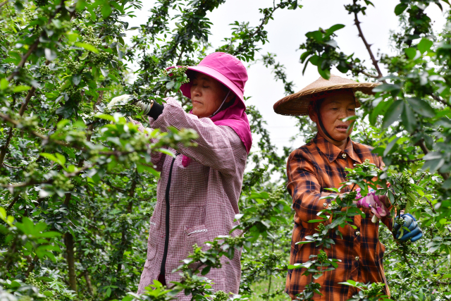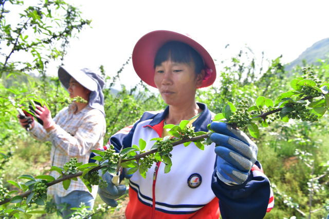 因?yàn)榛ń返牟烧谳^短,每年6月中旬到7月中旬,椒農(nóng)就要將花椒全部采摘完,為了在采摘期內(nèi)采摘完花椒,需要大量勞動(dòng)力,這也給當(dāng)?shù)亓羰貗D女帶來了在“家門口”掙錢的機(jī)會(huì)。每到這個(gè)時(shí)候,來自本地的婦女便絡(luò)繹不絕地趕來采摘花椒。據(jù)曾光源介紹,合作社一年的勞務(wù)支出就近30萬元。