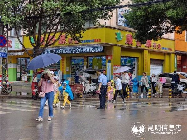 民警全程對幼兒行走過程中的交通安全進(jìn)行監(jiān)督,引導(dǎo)車輛注意避讓,指揮幼兒有序行走,在突然大雨的情況下,幫助孩子們找尋安全地點(diǎn)進(jìn)行避雨,并利用警車將沒有攜帶雨具的同學(xué)成功“擺渡”到校園內(nèi)。