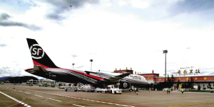 降落在香格里拉機(jī)場的順豐全貨機(jī) 供圖