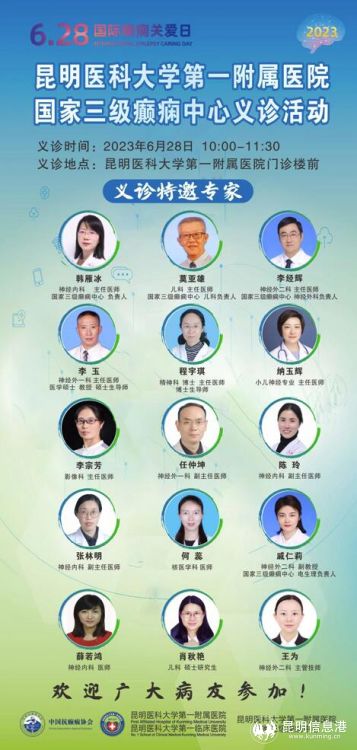 昆明信息港訊 記者孫紅亮 記者獲悉,6月28日,昆明醫(yī)科大學第一附屬醫(yī)院綜合癲癇國家三級癲癇中心聯(lián)合該院神經內科、神經外科、兒科、醫(yī)科學精神科、醫(yī)學影像科等學科10多名臨床經驗豐富的科室專家教授,將在西昌路院區(qū)進行大型義診活動,當天上午10時正式開始。