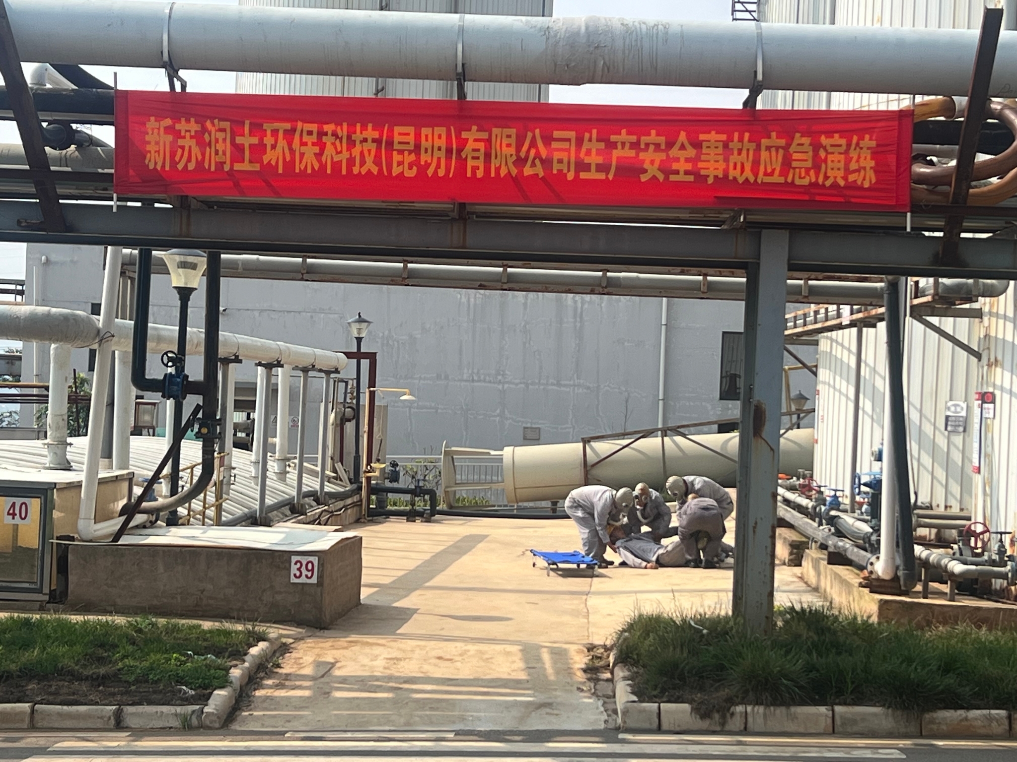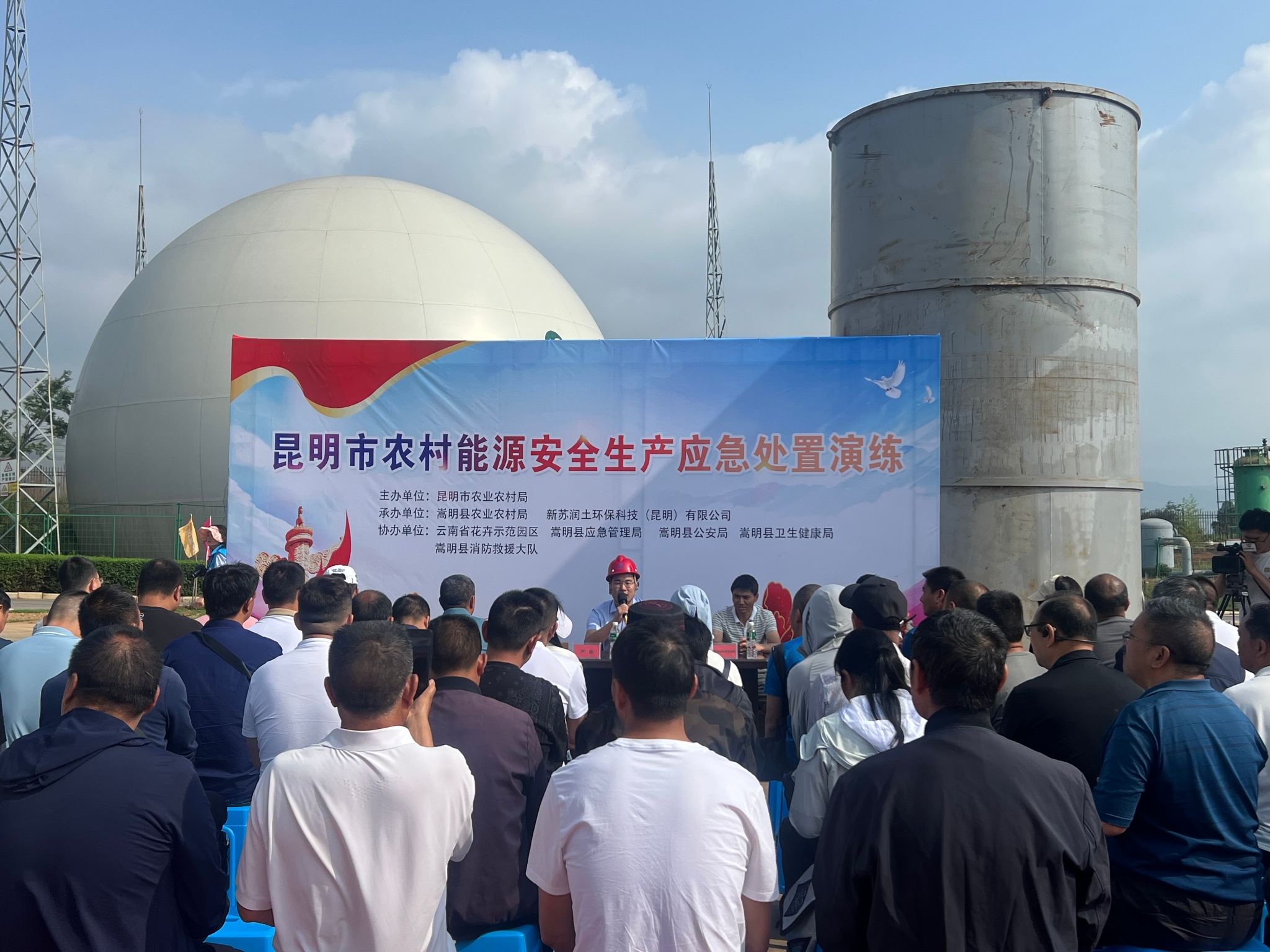 6月27日上午,由昆明市農(nóng)業(yè)農(nóng)村局主辦,嵩明縣農(nóng)業(yè)農(nóng)村局、嵩明縣、新蘇潤(rùn)土環(huán)??萍迹ɡッ鳎┯邢薰境修k,云南省花卉示范區(qū)、嵩明縣應(yīng)急管理局、嵩明縣公安局、嵩明縣衛(wèi)生健康局、嵩明縣消防救援大隊(duì)協(xié)辦的昆明市農(nóng)村能源安全生產(chǎn)應(yīng)急處置演練在新蘇潤(rùn)土環(huán)保科技(昆明)有限公司進(jìn)行演練。本次演練模擬新蘇潤(rùn)土環(huán)??萍迹ɡッ鳎┯邢薰疽幻麊T工沼氣中毒,公司啟動(dòng)應(yīng)急響應(yīng),與當(dāng)?shù)貞?yīng)急管理、公安消防、衛(wèi)生健康等部門合作,組織開展人員救治、人員疏散和搶險(xiǎn)救援等應(yīng)急處置工作。